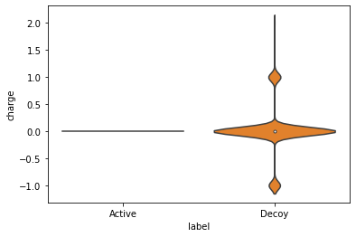 위 플롯 결과를 보면 decoy 데이터 세트에 전하를 띤 분자가 거의 없는 것으로 나타납니다. 위에서 전하를 띤 분자 데이터프레임을 추출했던 과정을 똑같이 적용해 남아 있는 전하 분자가 얼마나 있는지 알아낼 수 있습니다.