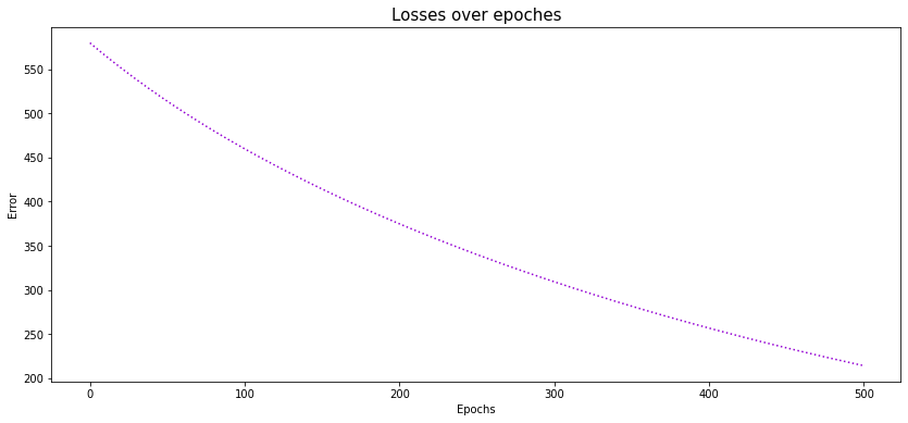 plt.title('Losses over epoches', fontsize=15)