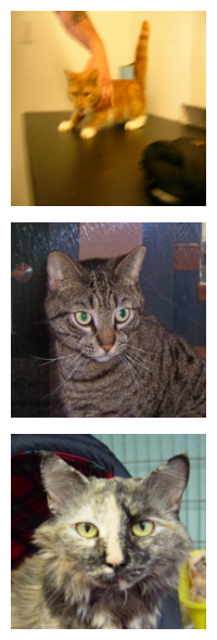 개와 고양이 이미지 데이터셋의 원본 사진을 시각화 합니다. 처음 3장의 이미지만 출력합니다.