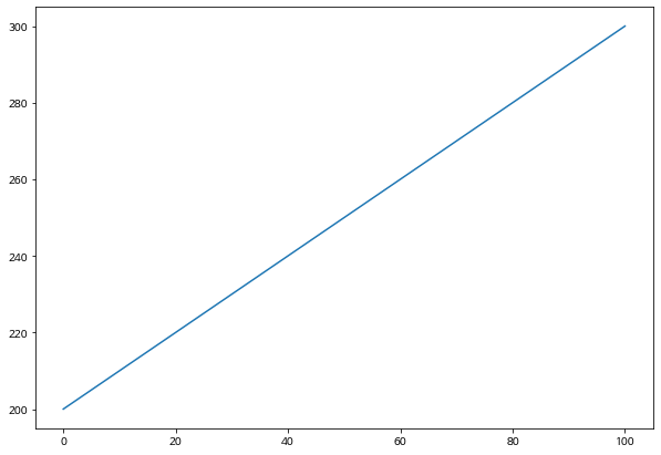 data2 = np.arange(200, 301)