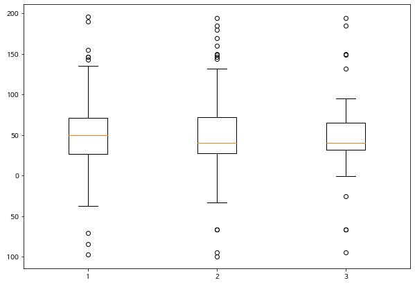 data = [data, d2, d2[::2,0]]boxplot()으로 매우 쉽게 생성할 수 있습니다.