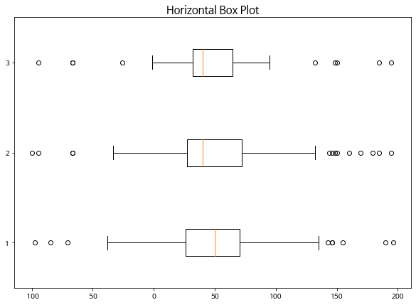 plt.title('Horizontal Box Plot', fontsize=15)