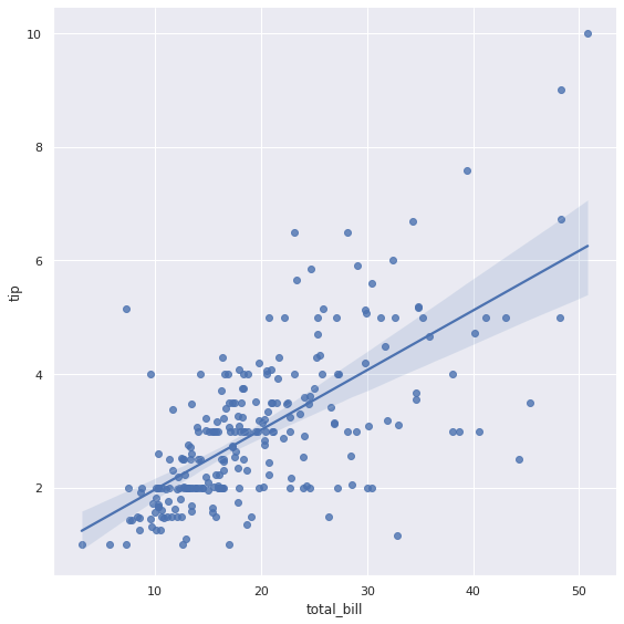 sns.lmplot(x="total_bill", y="tip", height=8, data=tips)