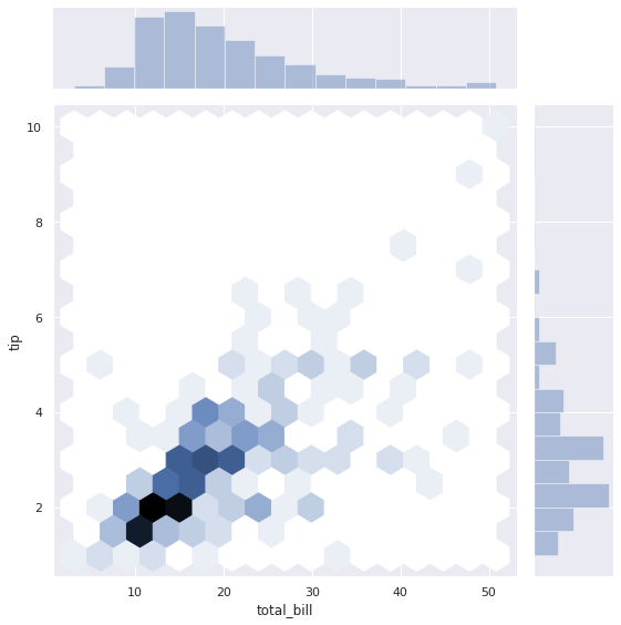 kind=‘hex’ 옵션을 통해 hex 모양의 밀도를 확인할 수 있습니다.