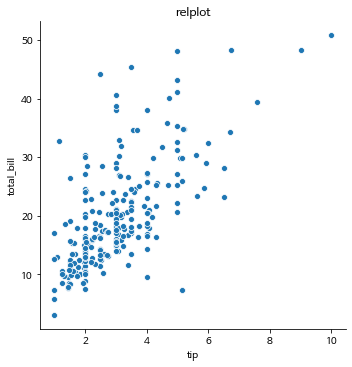 sns.relplot(x='tip', y='total_bill', data=tips)