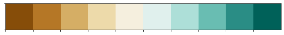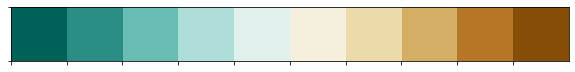sns.palplot(sns.color_palette("BrBG_r", 10))