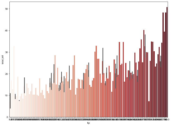 sns.barplot(x="tip", y="total_bill", data=tips, palette='Reds')