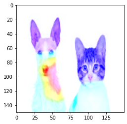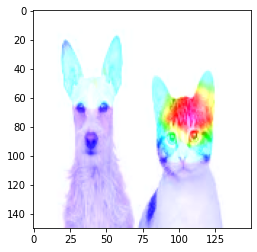 cam = cv2.applyColorMap(np.uint8(255*heatmap),cv2.COLOR_BGR2RGB)plt.imshow(cv2.add(cam,img))