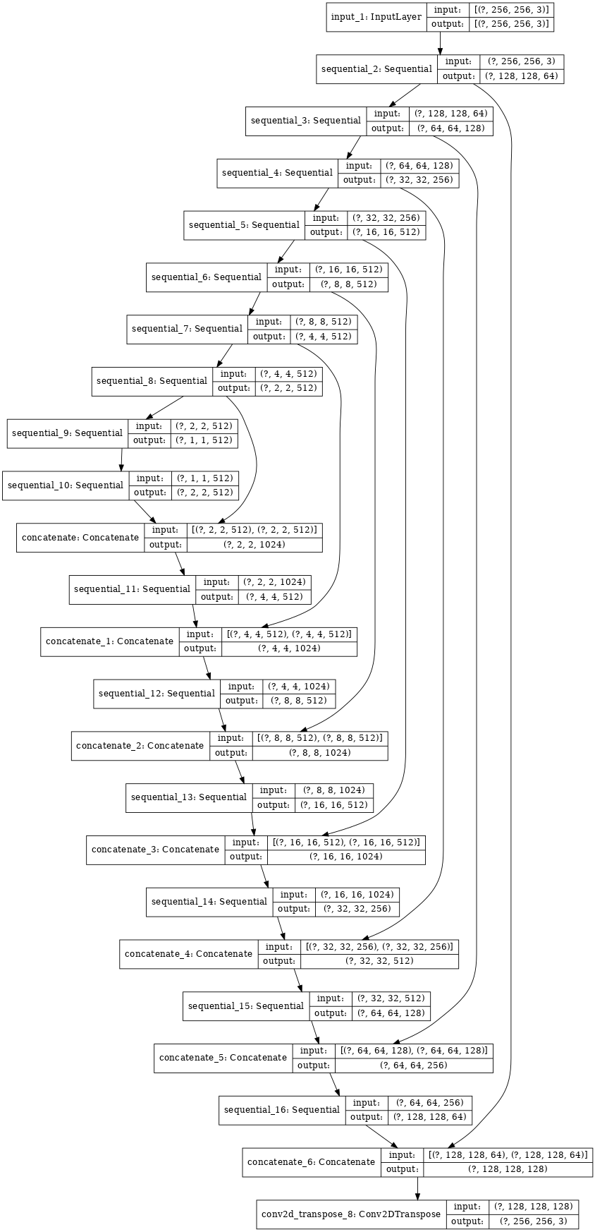 - Each block in the decoder is (Transposed Conv -> Batchnorm -> Dropout(applied to the first 3 blocks) -> ReLU)