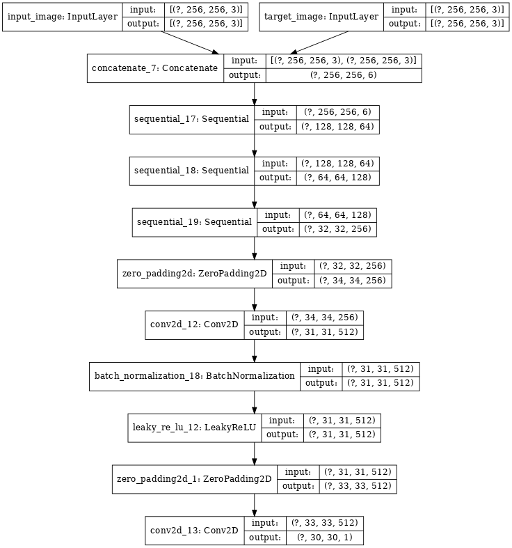 - The discriminator receives the input_image and the generated image as the first input. The second input is the input_image and the target_image.