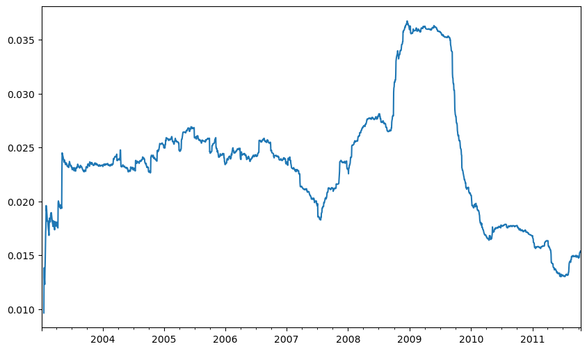 expanding_mean = std250.expanding().mean()plt.figure()<Figure size 1000x600 with 0 Axes>