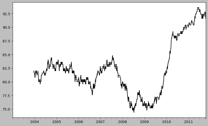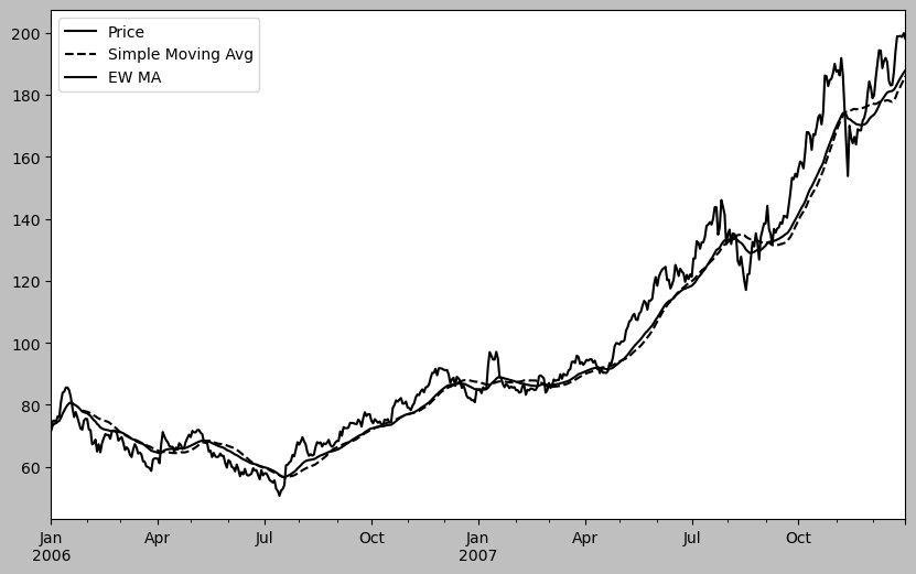 ewma30.plot(style="k-", label="EW MA")