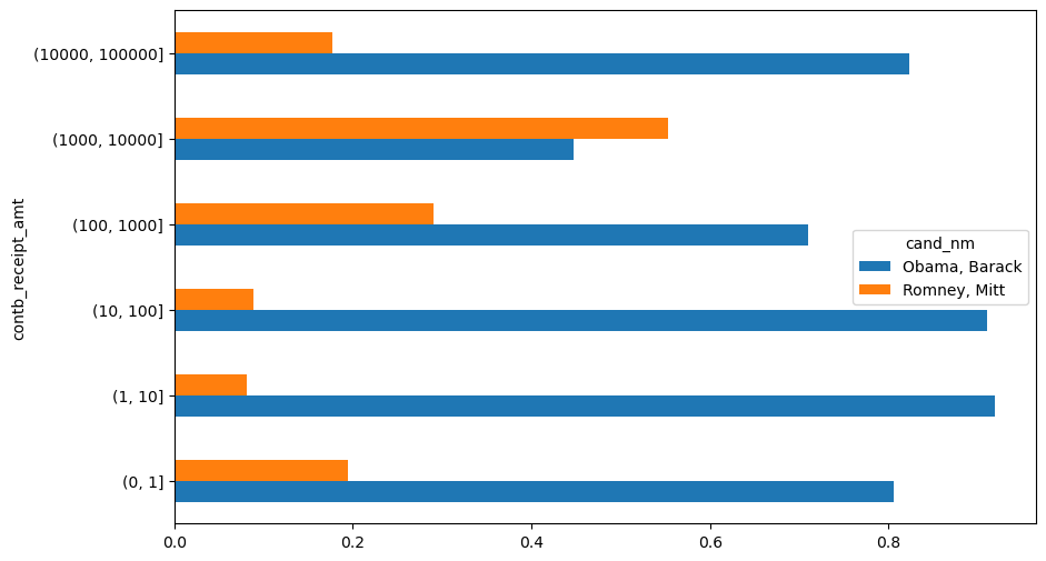 bucket_sums = grouped["contb_receipt_amt" ].sum ().unstack(level= 0 )