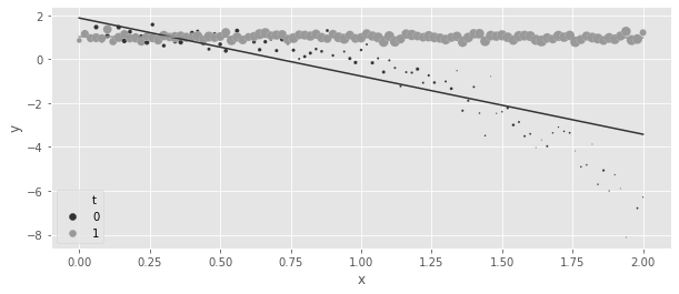 ).assign(y=lambda d: np.random.normal(d["x"] + d["t"], 0.1))