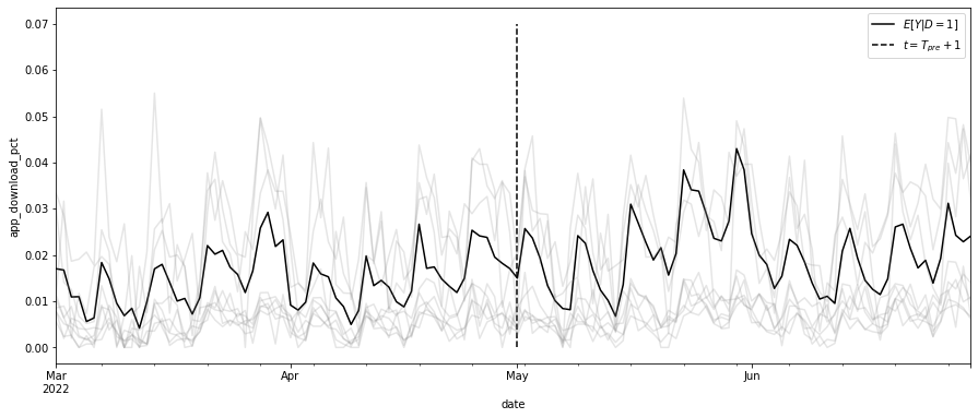 ax1.plot(y_co.index, y_tr.mean(axis=1), label="Treated")