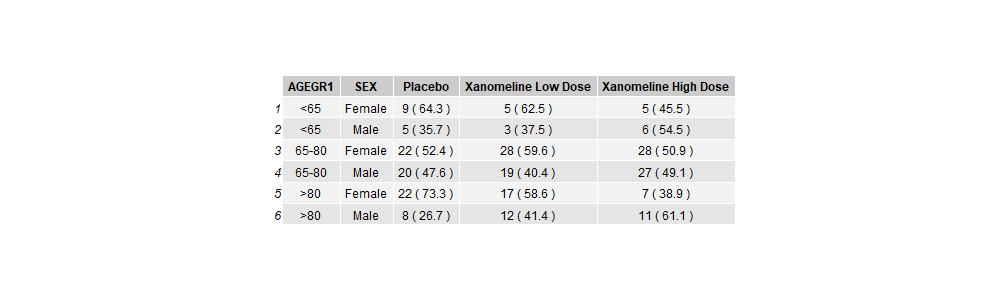 SEX Placebo `Xanomeline Low Dose` `Xanomeline High Dose`