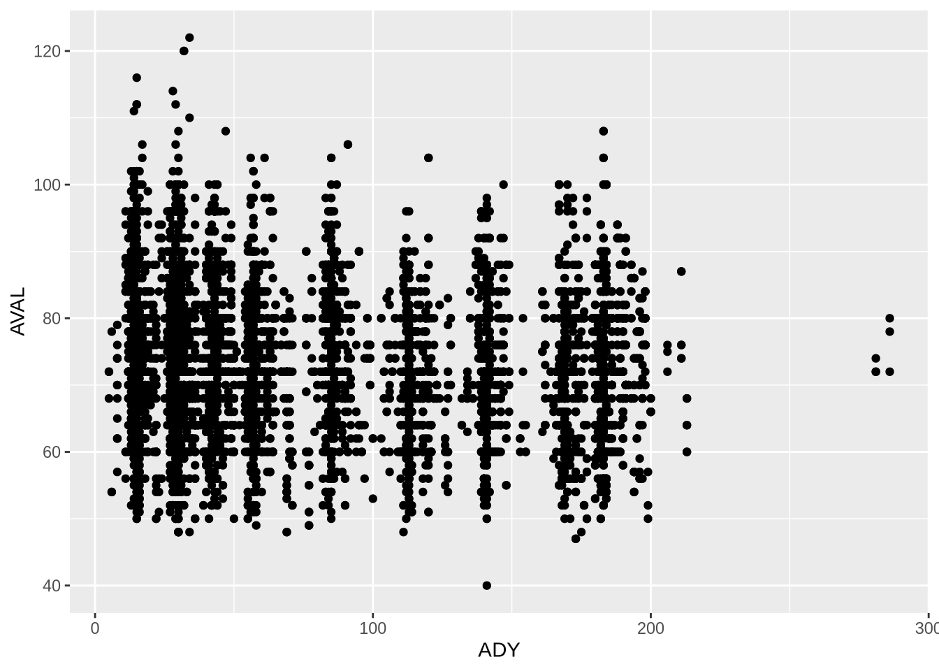ggplot(data = PR, mapping = aes(x = ADY, y = AVAL))