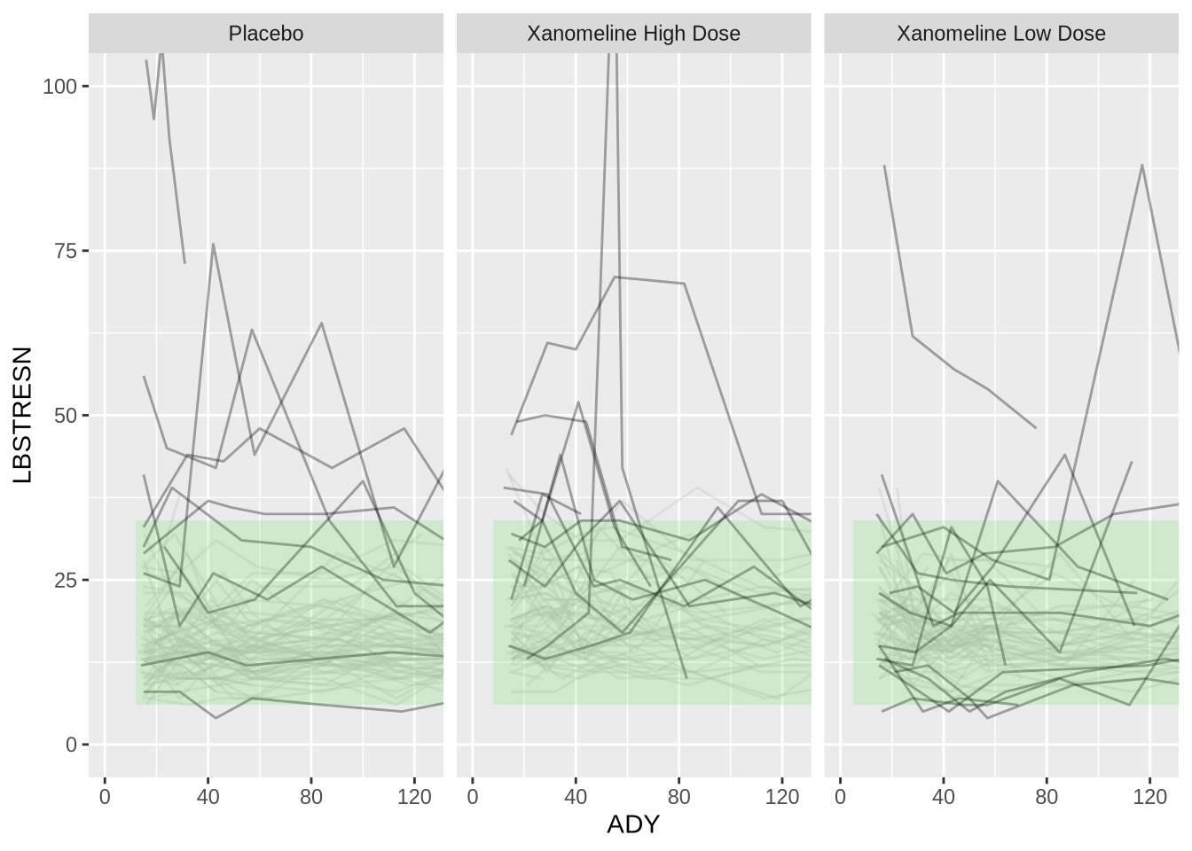 gghighlight(any(LBNRIND %in% c("HIGH", "LOW")), calculate_per_facet = TRUE) +