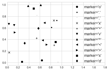 label="marker='{0}'".format(marker),