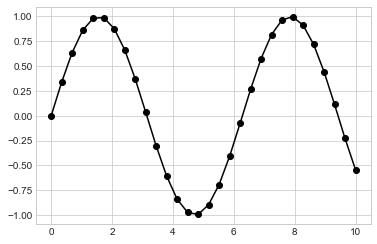 plt.plot(x, y, "-ok");