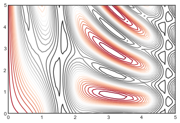plt.contour(X, Y, Z, 20, cmap="RdGy");