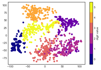 plt.colorbar(ticks=range(6), label="digit value")