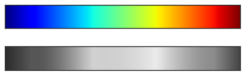 ax[1].imshow([grayscale], extent=[0, 10, 0, 1])view_colormap("jet")