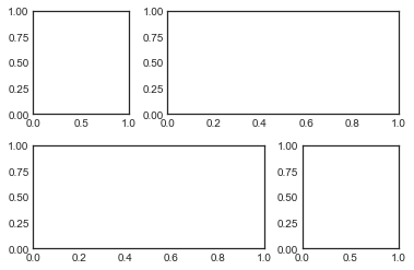 grid = plt.GridSpec(2, 3, wspace=0.4, hspace=0.3)여기에서 익숙한 파이썬(Python) 슬라이싱 구문을 사용하여 하위 플롯 위치와 범위를 지정합니다(다음 그림 참조).