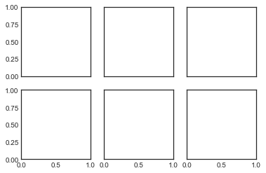 fig, ax = plt.subplots(2, 3, sharex='col', sharey='row')
