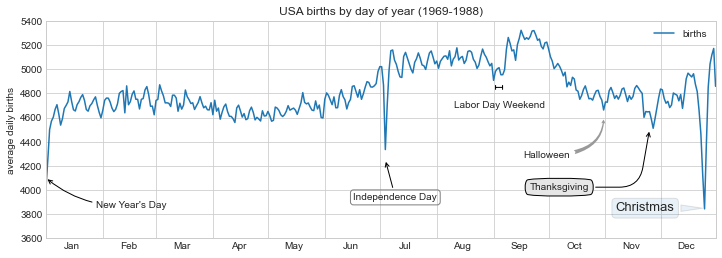 ax.text('2012-7-4', 4250, "Independence Day", ha='center', **style)