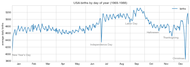 ax.text('2012-1-1', 3950, "New Year's Day", **style)