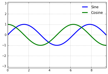 ax.plot(x, np.cos(x), lw=3, label='Cosine')