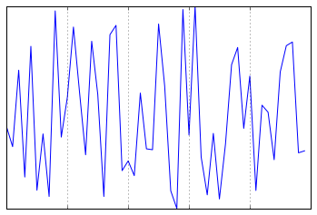 특히 x축 틱의 경우 숫자가 거의 겹쳐서 해독하기가 상당히 어렵습니다. One way to adjust this is with plt.MaxNLocator, which allows us to specify the maximum number of ticks that will be displayed. 이 최대 수가 주어지면 Matplotlib는 내부 논리를 사용하여 특정 눈금 위치를 선택합니다(다음 그림 참조).