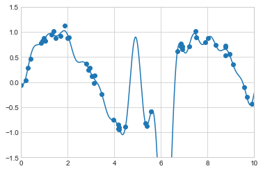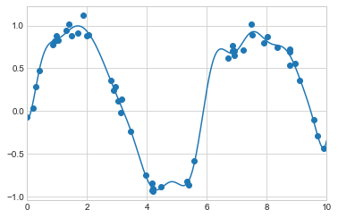 model = make_pipeline(GaussianFeatures(30), Lasso(alpha=0.001, max_iter=2000))
