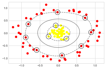 여기서 일어나는 일을 더 잘 시각화하기 위해 SVM 결정 경계를 표시하는 빠른 편의 함수를 만들어 보겠습니다(다음 그림 참조).