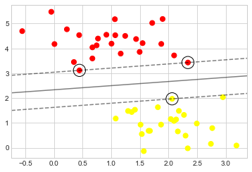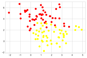 ax.set_ylim(ylim)plt.scatter(X[:, 0], X[:, 1], c=y, s=50, cmap="autumn")
