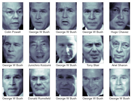 print(faces.images.shape)['Ariel Sharon' 'Colin Powell' 'Donald Rumsfeld' 'George W Bush'