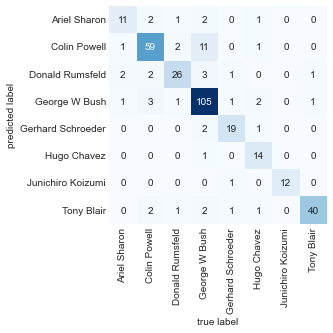 print(classification_report(ytest, yfit, target_names=faces.target_names)) precision recall f1-score support