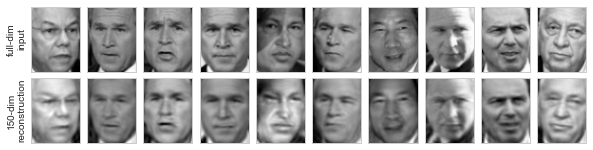 ax[1, 0].set_ylabel("150-dim\nreconstruction");