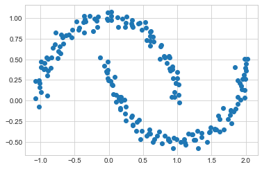 Xmoon, ymoon = make_moons(200, noise=.05, random_state=0)