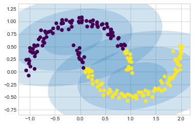 plot_gmm(gmm2, Xmoon)