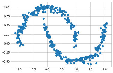 plt.scatter(Xmoon[:, 0], Xmoon[:, 1]);