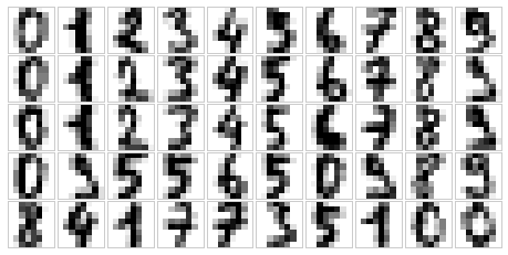 fig, ax = plt.subplots(5, 10, figsize=(8, 4),