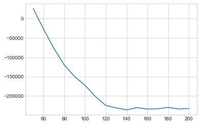 n_components = np.arange(50, 210, 10)