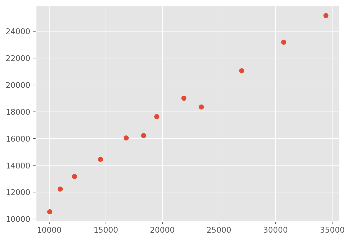 plt.scatter(gdp_australia, gdp_nz)
