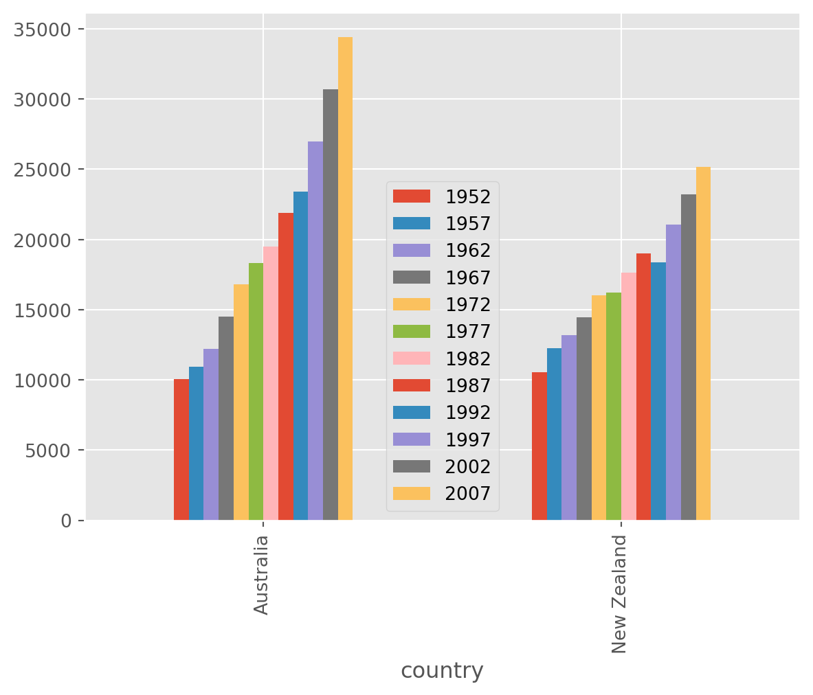 data = pd.read_csv('data/gapminder_gdp_oceania.csv', index_col='country')