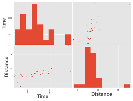 scatter_matrix(df.query("Time < 4000"), alpha=1);