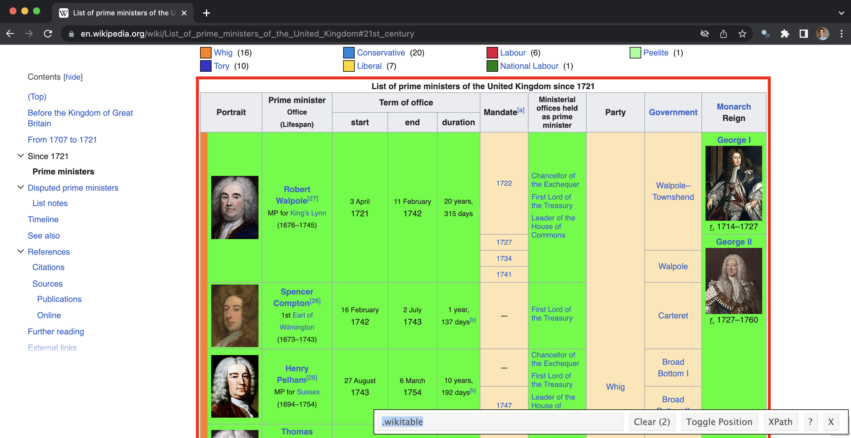1 Robert Walpole 1676–1745 <NA>