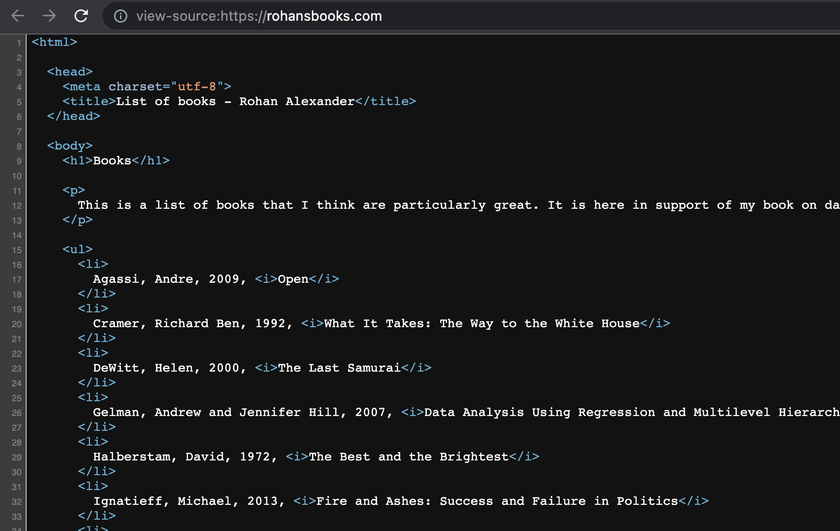babynames(Wickham 2021)gh(Bryan and Wickham 2021)here(Müller 2020)httr(Wickham 2023)janitor(Firke 2023)jsonlite(Ooms 2014)lubridate(Grolemund and Wickham 2011)pdftools(Ooms 2022a)purrr(Wickham and Henry 2022)rvest(Wickham 2022)spotifyr(Thompson et al. 2022) (이 패키지는 CRAN에 없으므로install.packages("devtools")실행 후devtools::install_github("charlie86/spotifyr")로 설치하세요.)tesseract(Ooms 2022b)tidyverse(Wickham et al. 2019)tinytable(Arel-Bundock 2024)usethis(Wickham, Bryan, and Barrett 2022)xml2(Wickham, Hester, and Ooms 2021)
