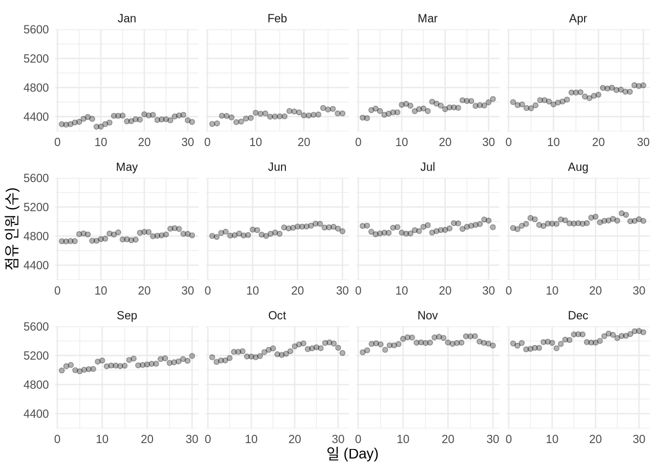 pivot_longer()를 사용하여 데이터를 길게 변환하세요. ggplot을 사용하여 그래프를 생성하세요.- 그런 다음